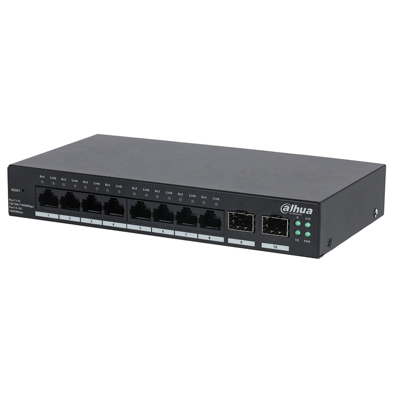 - порты: 8× RJ45 10/100/1000 Мбит/с, 2× SFP 1000 Мбит/с (uplink);