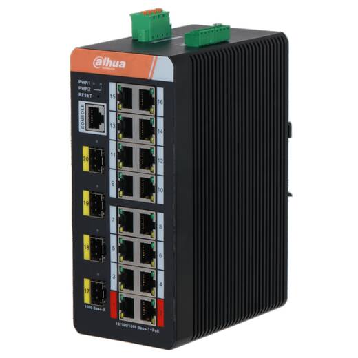 DH-IS4420-16GT-240 – 16-портовый промышленный гигабитный управляемый коммутатор с PoE.