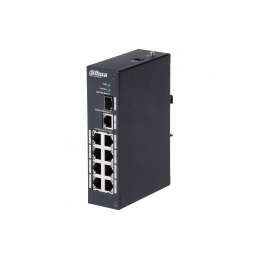DH-PFS3110-8T – неуправляемый Fast Ethernet коммутатор, укомплектован самонастраивающимися портами: 8×10/100M порта RJ-45, одним 10/100/1000M портом RJ-45 и одним с SPF-портом.