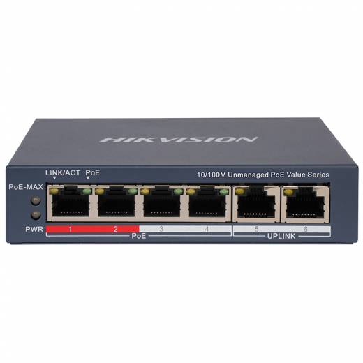 - количество портов: 4×порта PoE 10/100 Мбит/с, 2×порта RJ45 10/100 Мбит/с;