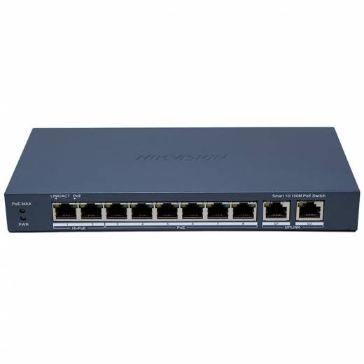 - количество портов: 8 портов PoE 10/100 Мбит/с, 2 гигабитных порта RJ45;