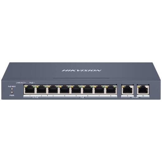 - количество портов: 8 портов PoE 10/100 Мбит/с, 2 гигабитных порта RJ45;