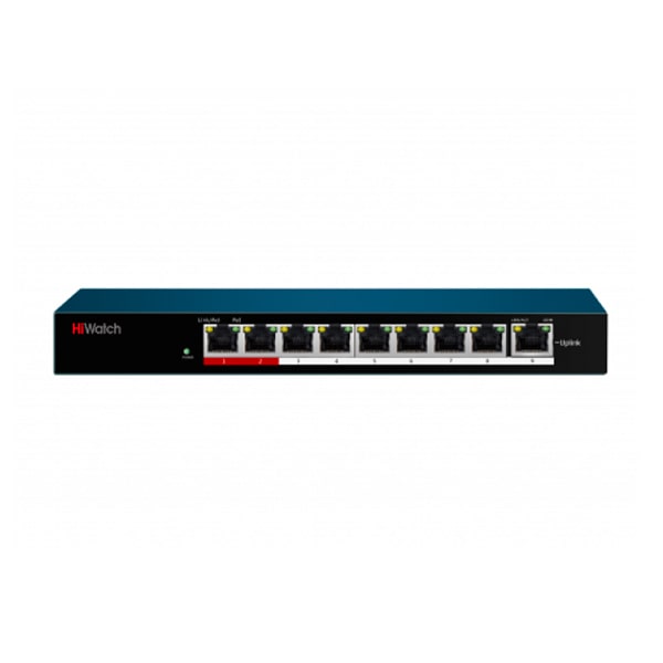 DS-S908P(B) – неуправляемый PoE коммутатор оборудован 8 портами RJ-45 с поддержкой PoE и Uplink-портом для подключения к сети и стекирования. В режиме Extend PoE дальность трансляции на скорости 10 Мбит/с по витой паре достигает 250 метров (для портов 1-8).