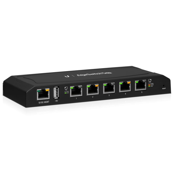 EdgeSwitch 5XP – управляемый, 5-и портовый гигабитный коммутатор с возможностью раздачи PoE. Каждый порт настраивается индивидуально, так что можно подключать как PoE-устройства, так и обычные.
