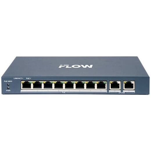 - количество портов: 8 × 10/100M RJ45 PoE, 2 × uplink порта 1000М RJ45;