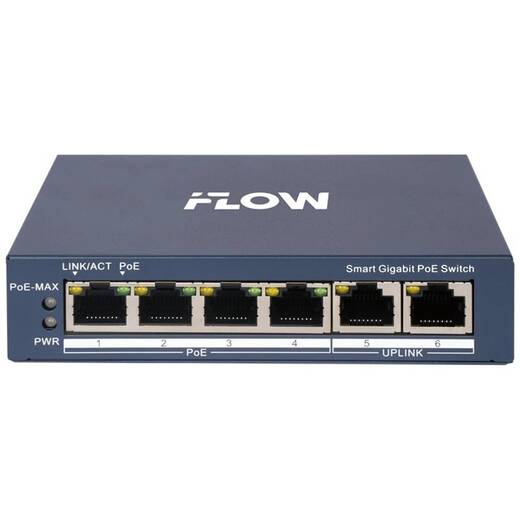 - количество портов: 4 гигабитных порта RJ45 PoE, 2 × uplink порта 1000М RJ45;