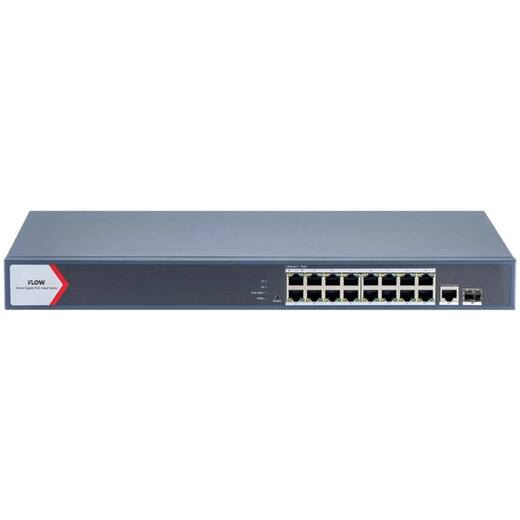 - количество портов: 16 × гигабитных портов RJ45 PoE, 1 × uplink порт 1000М RJ45, 1 × гигабитный порт SFP;