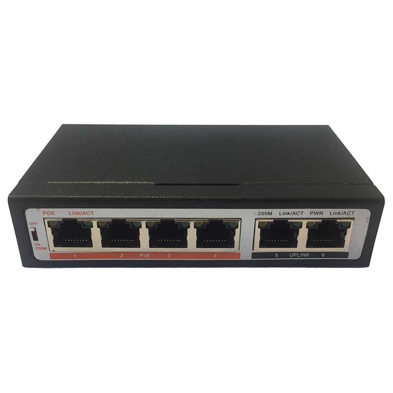 - 4 порта 10/100 BaseTX PoE + 2 порта 10/100 Mbps uplink;