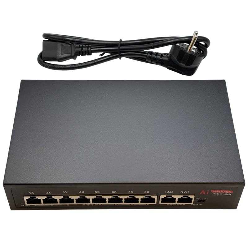 - порты 8×10/100 Мбит/с POE + 2×10/100/1000 Мбит/с Uplink;