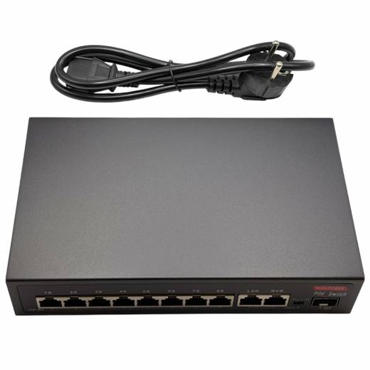 - порты 8×10/100 Мбит/с PoE + 2×10/100/1000 Мбит/с Uplink + 1×SFP 100/1000 Мбит/с Uplink;