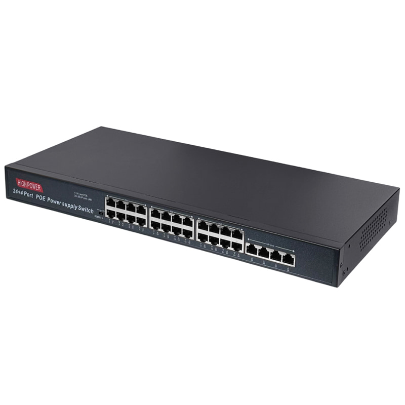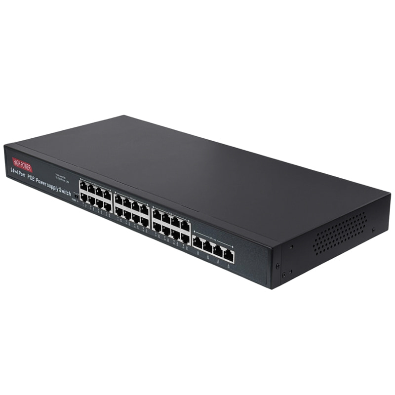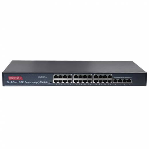 HN-POE4024 – неуправляемый PoE-коммутатор на 28 портов, 24 из которых с поддержкой технологии POE+ стандарта 802.3af/at (Type A) 10/100Мбит. Максимально поддерживаемая мощность подключаемых устройств составляет 30Вт на порт. Дополнительно присутствуют 4 гигабитных медных порта с максимальной скоростью до 1000Мбит, которые предназначены для подключения видеорегистраторов, серверов или организации высокоскоростного соединения с сетью интернет-провайдера. Данный коммутатор может работать в режиме CCTV (IPC), который позволяет передавать данные без питания по PoE на расстояние до 250 метров на скорости до 10 Мбит/с. Максимальная суммарная нагрузка на POE составляет 450 Вт.