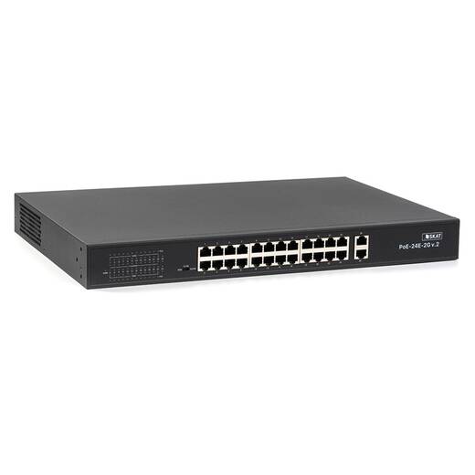 SKAT PoE-24E-2G v.2 – специализированный неуправляемый PoE коммутатор для использования в системах видеонаблюдения и безопасности.