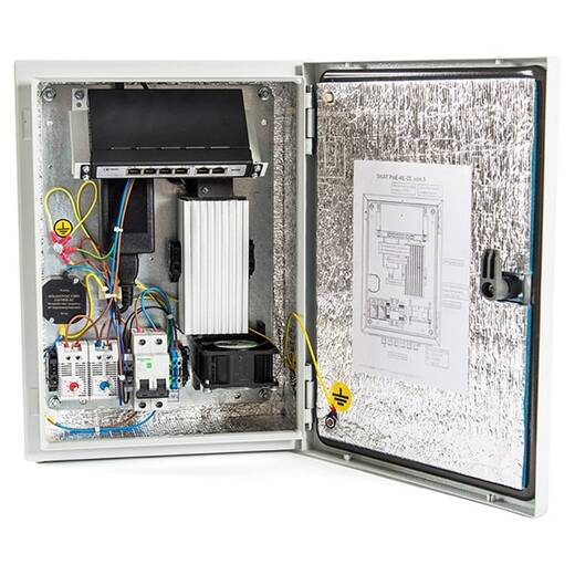Оснащен системой термостабилизации с помощью термостатов, позволяющим поддерживать температуру воздуха внутри корпуса не ниже +5 °С при отрицательных температурах окружающей среды.