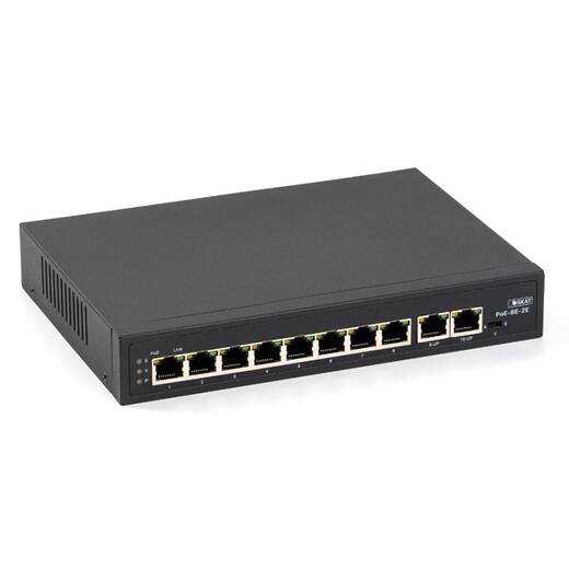 SKAT PoE-8E-2E – специализированный неуправляемый PoE коммутатор для использования в системах видеонаблюдения и безопасности.