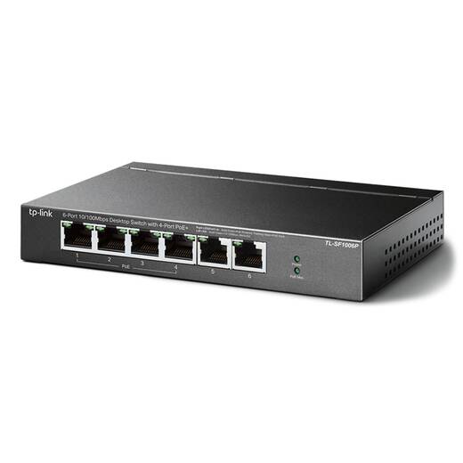 TL-SF1006P – 6-портовый 10/100 Мбит/с настольный коммутатор с 4 портами PoE+.