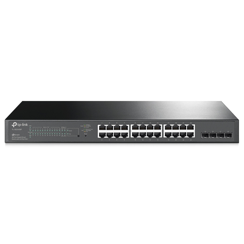 TL-SG2428P – JetStream гигабитный Smart коммутатор на 24 порта PoE+ и 4 SFP‑слота.