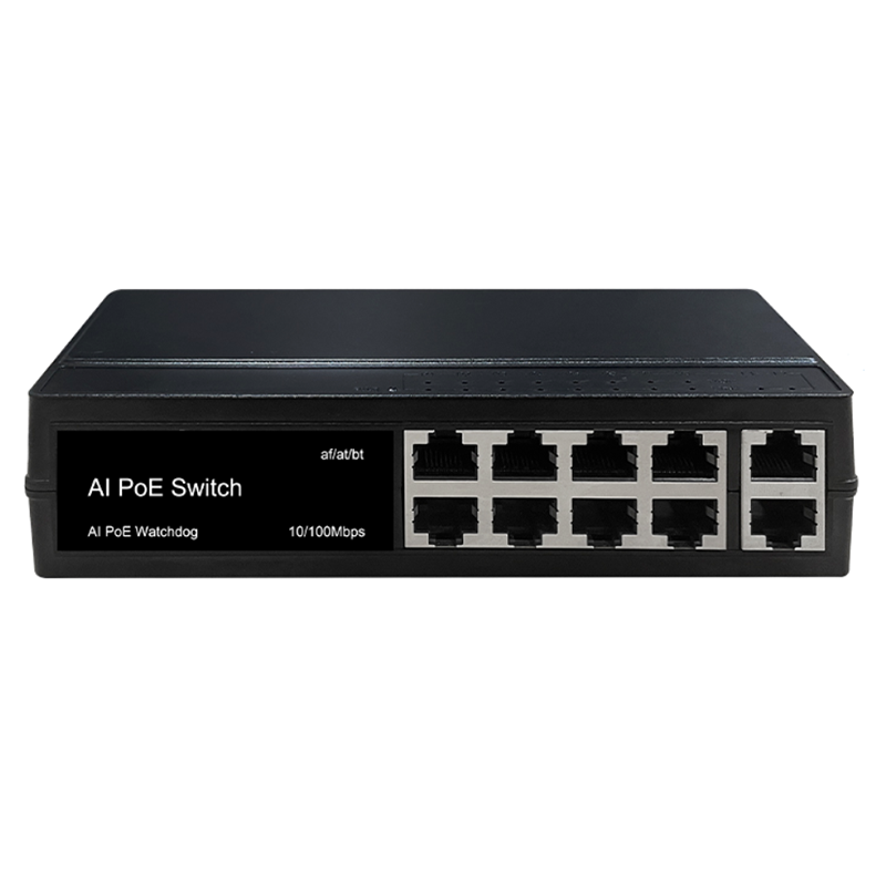 - порты: 8×100 Мбит/с PoE портов + 2×100 Мбит/с порта Uplink;