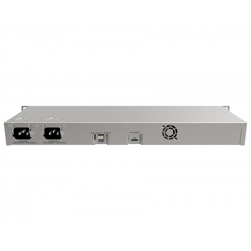 Mikrotik RB1100AHx4 – гигабитный маршрутизатор оснащен процессором Annapurna Alpine AL21400 с 4 ядрами Cortex A15 по 1.4 ГГц. Устройство имеет корпус 1U для монтажа в стойку, 13 гигабитных портов Ethernet, последовательный порт RS232 и два блока питания с функцией резервирования (а также поддержкой питания 48В DC Telecom и Passive PoE, 802.3at).