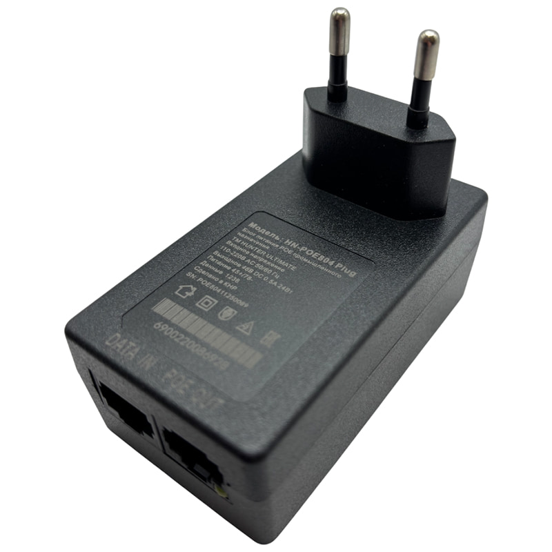 HN-804Plug – инжектор предназначен для питания по сети Fast Ethernet 10/100 Base-T IР видеокамер или другого оборудования, поддерживающего стандарты технологии PoE типа B, когда питание передаётся по свободным жилам V+(4, 5), V -(7, 8).