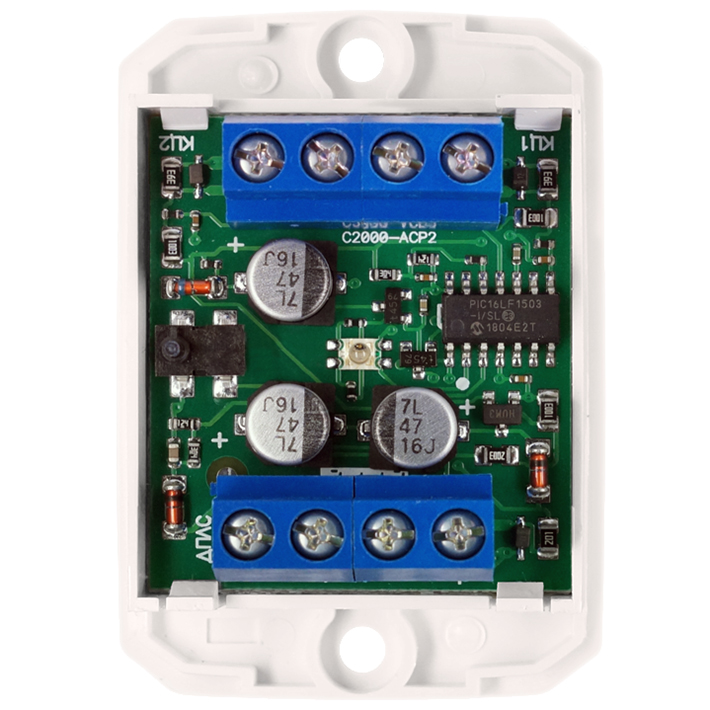 С2000-АСР2 – адресный счетчик расхода обеспечивает подключение 2-х импульсных счетчиков и передачу данных контроллеру С2000-КДЛ.