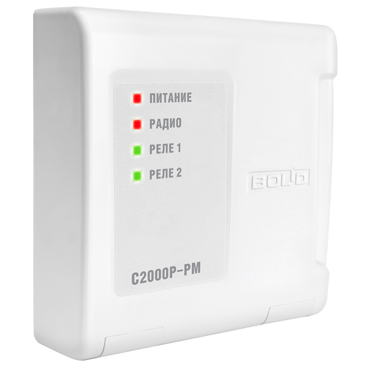 С2000Р-РМ - модуль релейный радиоканальный, применяется в системах охранной сигнализации, имеет два релейных выхода и предназначен для управления исполнительными устройствами (лампами, сиренами, электромагнитными замками и т.д.). Используется совместно с расширителем "С2000Р-АРР32".