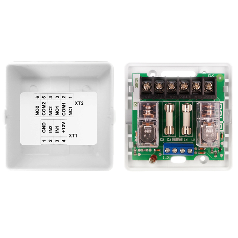 УК-ВК исп.06 – устройство коммутационное, содержит два реле с переключающими контактами и схему управления, позволяющую включать реле сигналом уровня логическая «1». Используется совместно с контроллером доступа С2000-2, работающим в режиме «Шлагбаум», для управления светофором, а также коммутации исполнительных устройств (ламп, сирен и других) в системах охранно-пожарной сигнализации и контроля доступа.
