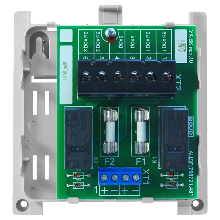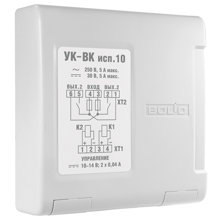 УК-ВК исп.10 – релейный усилитель на 2 канала. Предназначен для использования в системах контроля доступа и охранной сигнализации для коммутации исполнительных устройств, в системах пожарной сигнализации для передачи стартового импульса на приборы пожарные управления.