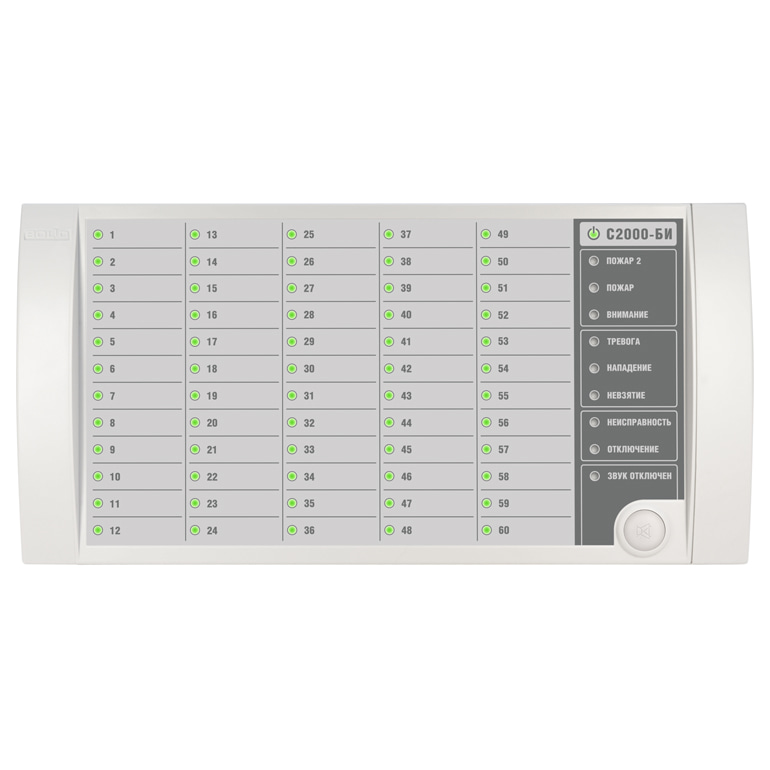 С2000-БИ – блок индикации для работы в составе ИСО «Орион» совместно с пультом контроля и управления С2000 (С2000М) и отображения с помощью встроенных индикаторов и звуковой сигнализации сообщений о событиях в 60 разделах системы.