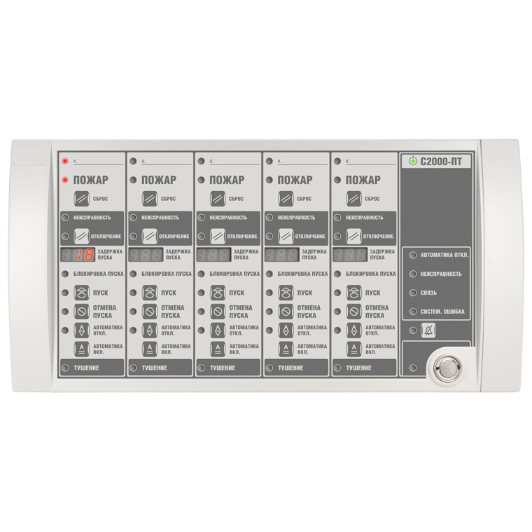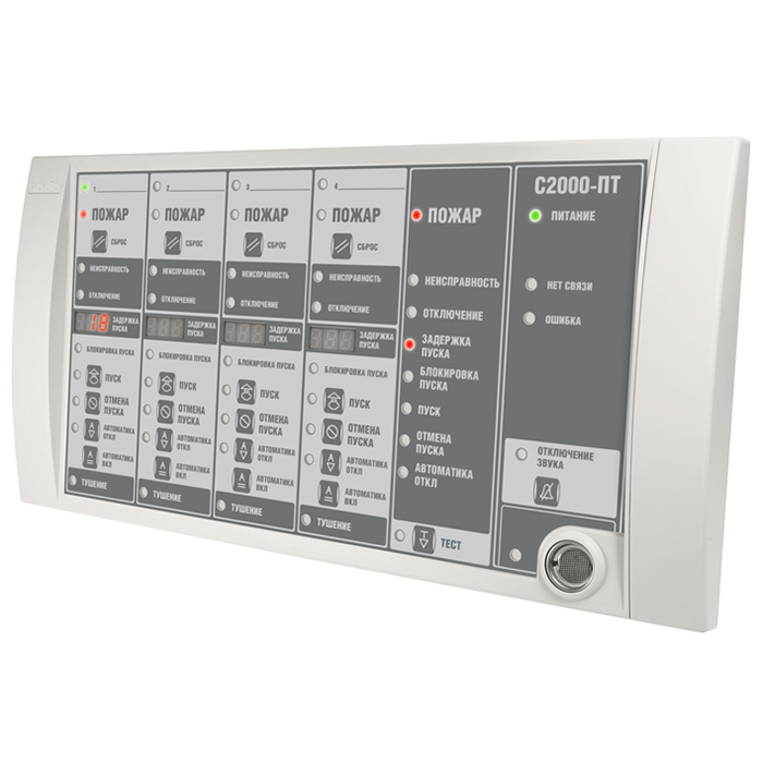 С2000-ПТ – блок индикации системы пожаротушения, предназначен для индикации состояния и дистанционного управления направлениями пожаротушения в составе автоматической установки газового, порошкового, аэрозольного пожаротушения или тушения тонкораспыленной водой.