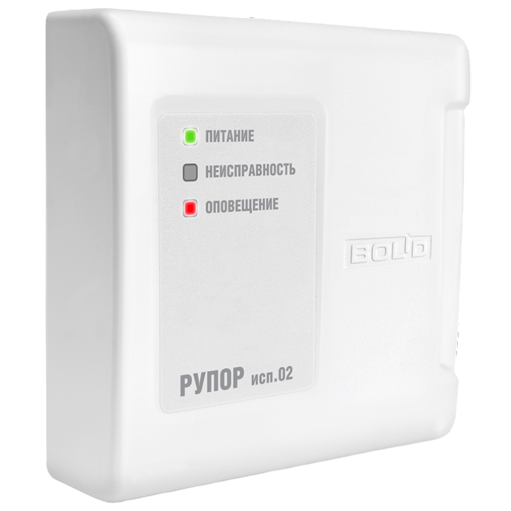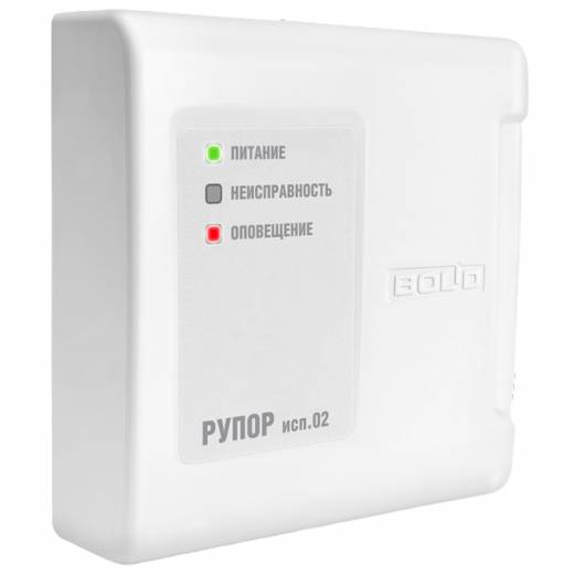 Рупор исп.02 2RS485 – блок речевого оповещения для трансляции предварительно записанной речевой информации о действиях, направленных на обеспечение безопасности при возникновении пожара и других чрезвычайных ситуаций. Предназначен для работы в составе ИСО "Орион".