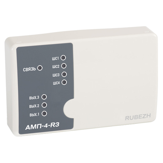 АМП-4-R3 – метка адресная пожарная, предназначена для подключения к адресной системе неадресных пожарных, охранных извещателей, считывателя Wiegand, управления оповещением, инженерными системами и передачи информации о состоянии шлейфа с извещателями в адресный приемно-контрольный прибор. Работает в составе адресной системы под управлением приемно-контрольного прибора Рубеж-2ОП прот.R3.