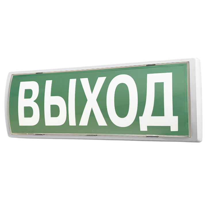 Внимание! Поставляется с установленной табличкой «ВЫХОД». Конструкция корпуса позволяет менять надписи на табло в зависимости от потребности на: «ПОЖАР», «ВЫЗОВ», «Выход налево», «Выход направо». Сменные вкладыши с надписями в комплекте (по 1 штуке).
