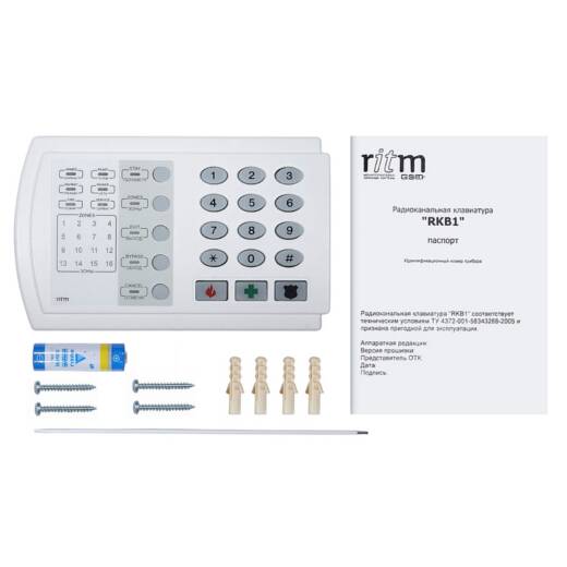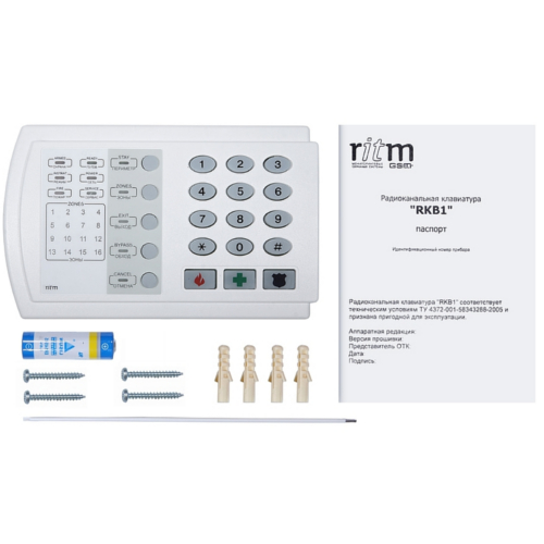 Ritm RKB1 - беспроводная радиоклавитура, которая предназначена для подключения к охранно-пожарным панелям Контакт GSM-10, Контакт GSM-10А, Контакт GSM-14 (все модификации), Контакт GSM-16 и Контакт 15. С радиоклавиатуры RKB1 возможно выполнять пораздельную постановку/снятие. Возможно подключить до 6 радиоклавиатур RKB1 к одной охранно-пожарной панели. Радиоклавиатура полностью дублирует звуковую и световую индикацию охранно-пожарной панели.