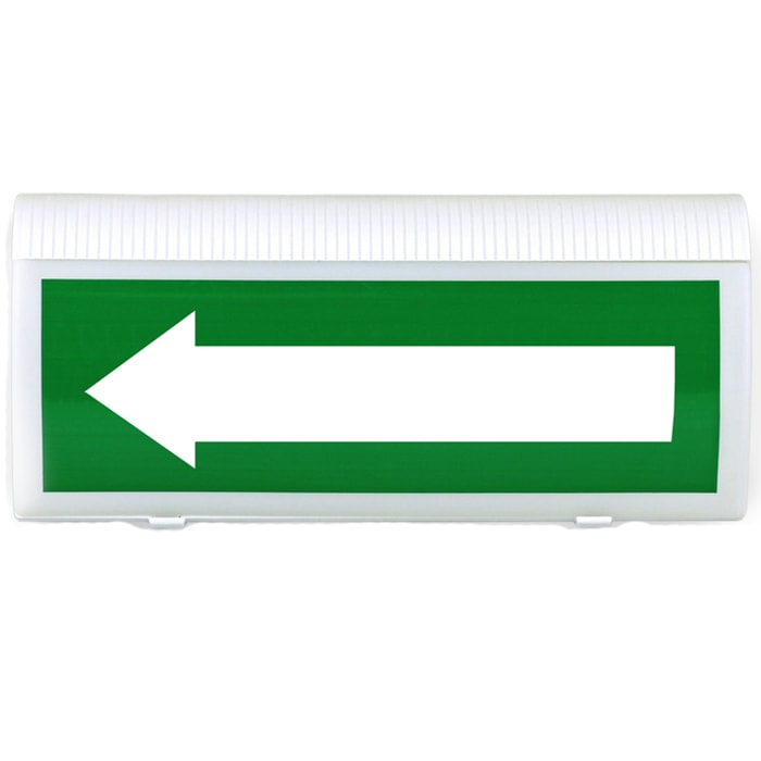 При пожаре оповещатель подсвечивает табло с указателем «СТРЕЛКА ВЛЕВО» мигающим белым светом, информируя окружающих о пожарной тревоге и необходимости покинуть помещение по направлению в соответствии с указателем.