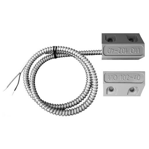 ИО 102-40 Б2П (3) серый – извещатель охранный точечный магнитоконтактный, предназначен для блокировки гаражных ворот, ангаров, железнодорожных контейнеров, телефонных шкафов и других конструктивных магнитопроводящих (металлических) и магнитонепроводящих (алюминиевых, деревянных и т.д.) элементов зданий и сооружений на открывание и смещение с выдачей в шлейф приемно-контрольного прибора извещения о тревоге путем размыкания или замыкания контактов геркона.