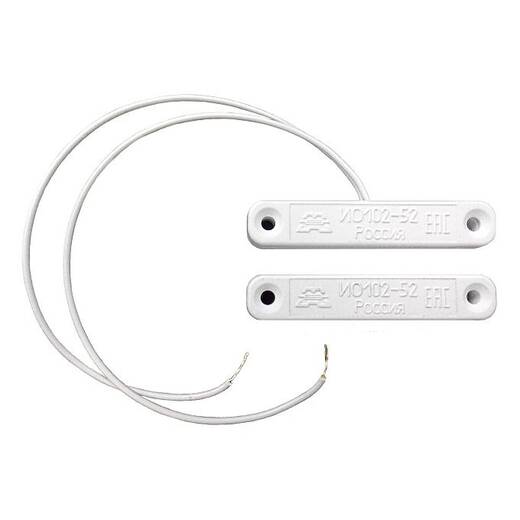 ИО 102-52 – извещатель охранный точечный магнитоконтактный для блокировки дверных и оконных проемов, организации устройств типа «ловушка», а также блокировки других конструктивных элементов зданий и сооружений на открывание или смещение с выдачей сигнала «тревога» путем размыкания контактов геркона на приемно-контрольный прибор, концентратор или пункт централизованного наблюдения.