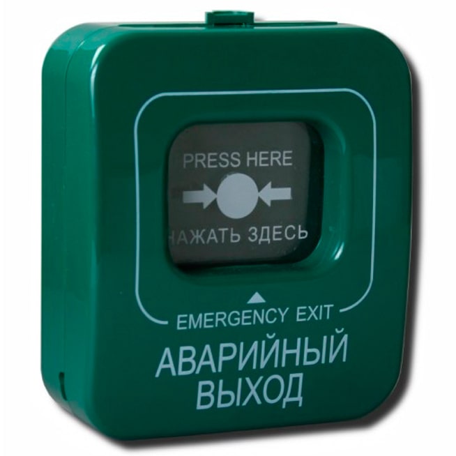 - корпус зеленого цвета, надпись "Аварийный выход";