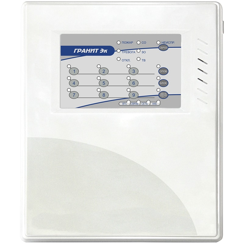 Гранит-9 Эк – прибор выполняет функции охранно-пожарной сигнализации, следит за состояние окружающей среды и управляет оборудованием.