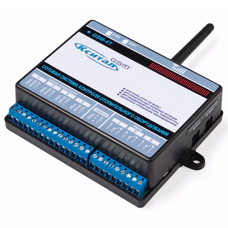 Кситал GSM-4T – GSM контроллер предназначен для оповещения по каналу сотовой связи об отказе отопительного оборудования и дистанционного управления им с помощью сотового телефона. Также обладает полным функционалом охранной сигнализации как КСИТАЛ GSM.
