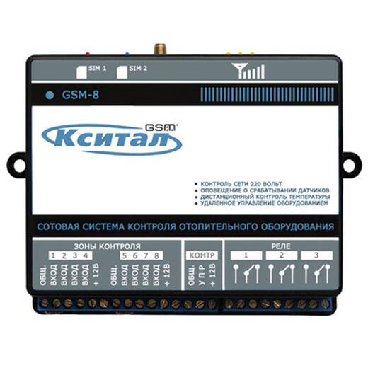 GSM-8 – сотовая система оповещения и управления, предназначена для дистанционного контроля и управления стационарными нетелефонизированными объектами с помощью сотового телефона. Это может быть: дом, дача, квартира, офис, склад, торговая точка, гараж и т.д.