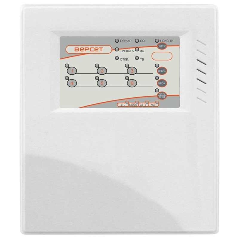 ВЕРСЕТ 06 – прибор приемно-контрольный и управления охранно-пожарный, обеспечивает охрану от проникновения посторонних лиц в охраняемое помещение, пожарную сигнализацию и пожарное оповещение.