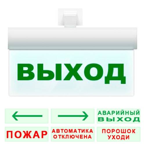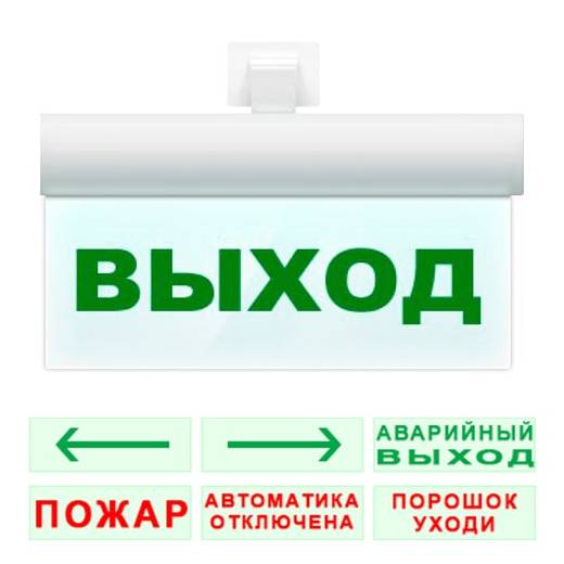 К стандартным изображениям относятся: EXIT, ВЫХОД, стрелка, человек по лестнице, человек в дверь.