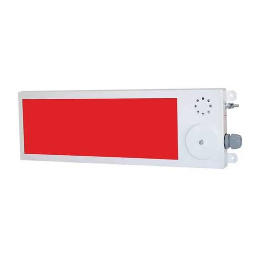 Оповещатель представляет собой моноблок, содержащий световое табло, звуковой оповещатель, коммутационный отсек. В оповещателе используется герметичная оболочка, изготовленная из малоуглеродистой стали с полимерным покрытием.