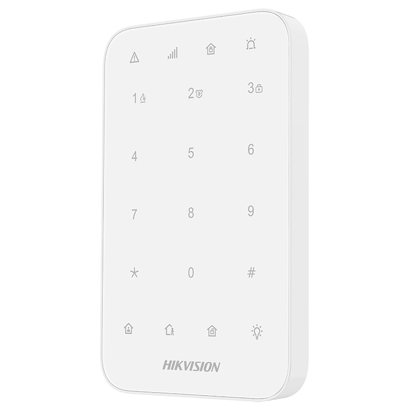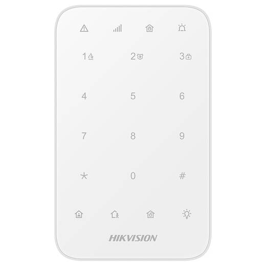 KeyPad (DS-PK1-E-WE) – беспроводная LED-клавиатура охранной панели, которая может быть подключена к AX PRO для контроля и управления тревожными событиями. Поддерживается извещение о тревоге при помощи индикатора и бипера.