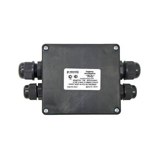 УК-Ex – устройство коммутационное, предназначено для коммутации искробезопасных цепей во взрывоопасных зонах. Имеет шесть парных клеммных соединений под винт.
