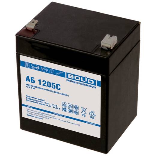 АБ 1205С – аккумулятор стационарный свинцово-кислотный с регулирующим клапаном для применения в резервированных источниках питания (РИП), приборах приемно-контрольных, шкафах оборудования пожарной автоматики и другом оборудовании систем безопасности, прекращение функционирования которых недопустимо при отключении основного электропитания.