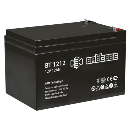 BT 1212 – стационарный аккумулятор разработан специально для охранно-пожарных систем, он может использоваться в буферном и циклическом режимах. Корпус представляет из себя запаянный моноблок из химически стойкого ABS пластика, аккумулятор герметичен, долив воды не требуется на протяжении всего периода эксплуатации. Односторонние клапаны располагаются на крышке батареи и позволяют поддерживать давление необходимое для рекомбинации газов. Технология AGM (стекловолоконные сепараторы, удерживающие электролит неподвижно) повышают устойчивость к воздействию температур.