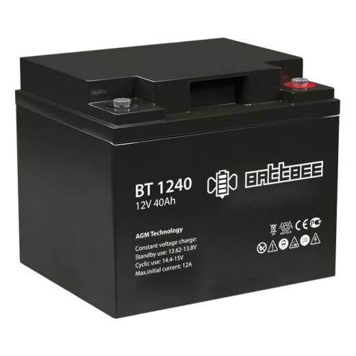 BT 1240 – стационарный аккумулятор разработан специально для охранно-пожарных систем, он может использоваться в буферном и циклическом режимах. Корпус представляет из себя запаянный моноблок из химически стойкого ABS пластика, аккумулятор герметичен, долив воды не требуется на протяжении всего периода эксплуатации. Односторонние клапаны располагаются на крышке батареи и позволяют поддерживать давление необходимое для рекомбинации газов. Технология AGM (стекловолоконные сепараторы, удерживающие электролит неподвижно) повышают устойчивость к воздействию температур.