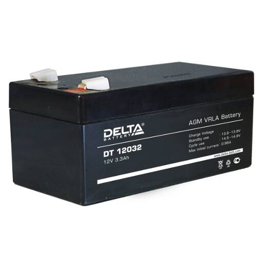DT 12032 – герметизированный VRLA свинцово-кислотный аккумулятор напряжением 12В, емкостью 3.3 Ач, разработанный для эксплуатации в слаботочных системах. Изготавливается по технологии AGM (электролит, абсорбированный в стекловолоконном сепараторе).