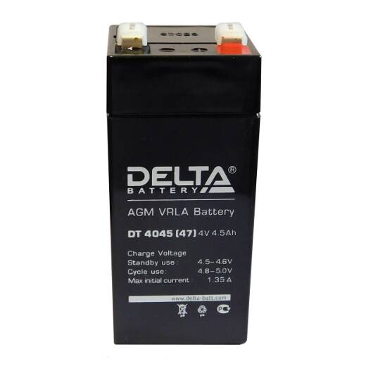 DT 4045 (47) – герметизированный VRLA свинцово-кислотный аккумулятор напряжением 4В, емкостью 4.5 Ач, разработанный для эксплуатации в слаботочных системах. Изготавливается по технологии AGM (электролит, абсорбированный в стекловолоконном сепараторе).